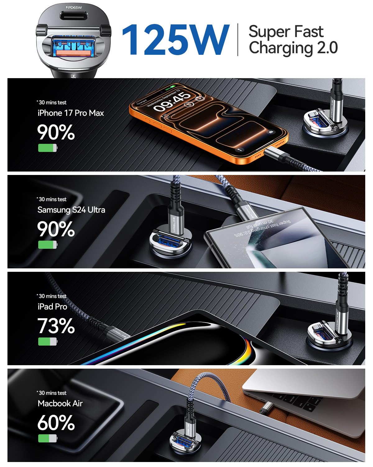 ![【Upgraded】 125W Car Charger USB C Super Fast Charging, [PD65W & QC60W][All Metal] MRGLAS Cigarette Lighter Car Charger, Car Accessories for iPhone 17 16 Pro Max Air iPad Samsung S25 Pixel 10 - Image 7](https://www.puktech.com/wp-content/uploads/2025/11/image_6-4.jpg)