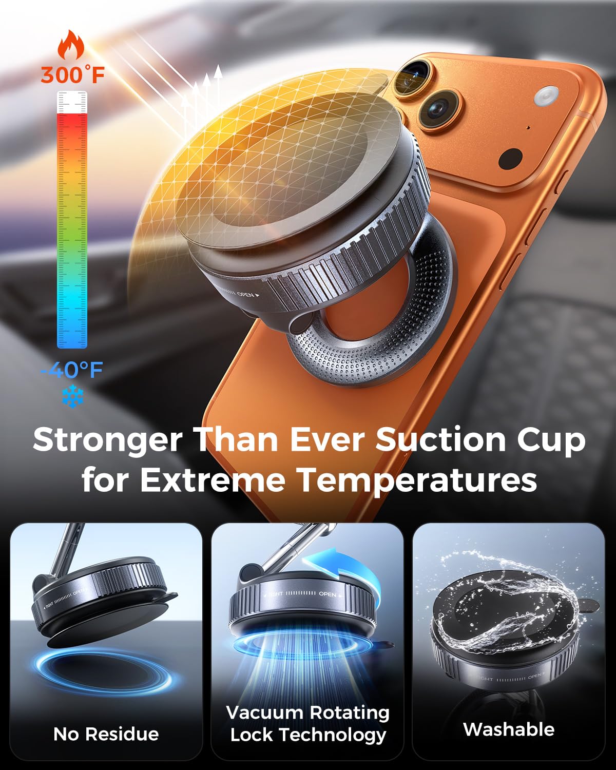 MRGLAS 2026 Upgraded Vacuum Magnetic Phone Holders for Your Car 360° Adjustable Absorption Magnetic Bracket 98LBS Magsafe Suction Cup Phone Mount for iPhone 17 Car Truck Accessories for Men Women