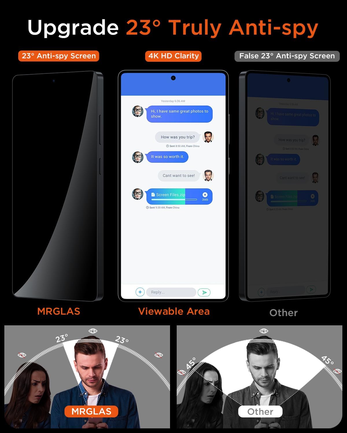 - [Excellent Privacy Protection] MRGLAS Samsung Galaxy S25 Ultra Privacy Screen Protector achieve 23Β° super powerful privacy function. When you’re in an elevator, subway, bank or other public place, block the view which trying to view your secrets from both sides. Your friends or coworkers sitting next to you won’t be able to see your information, providing the strongest protection for your privacy and sensitive information.