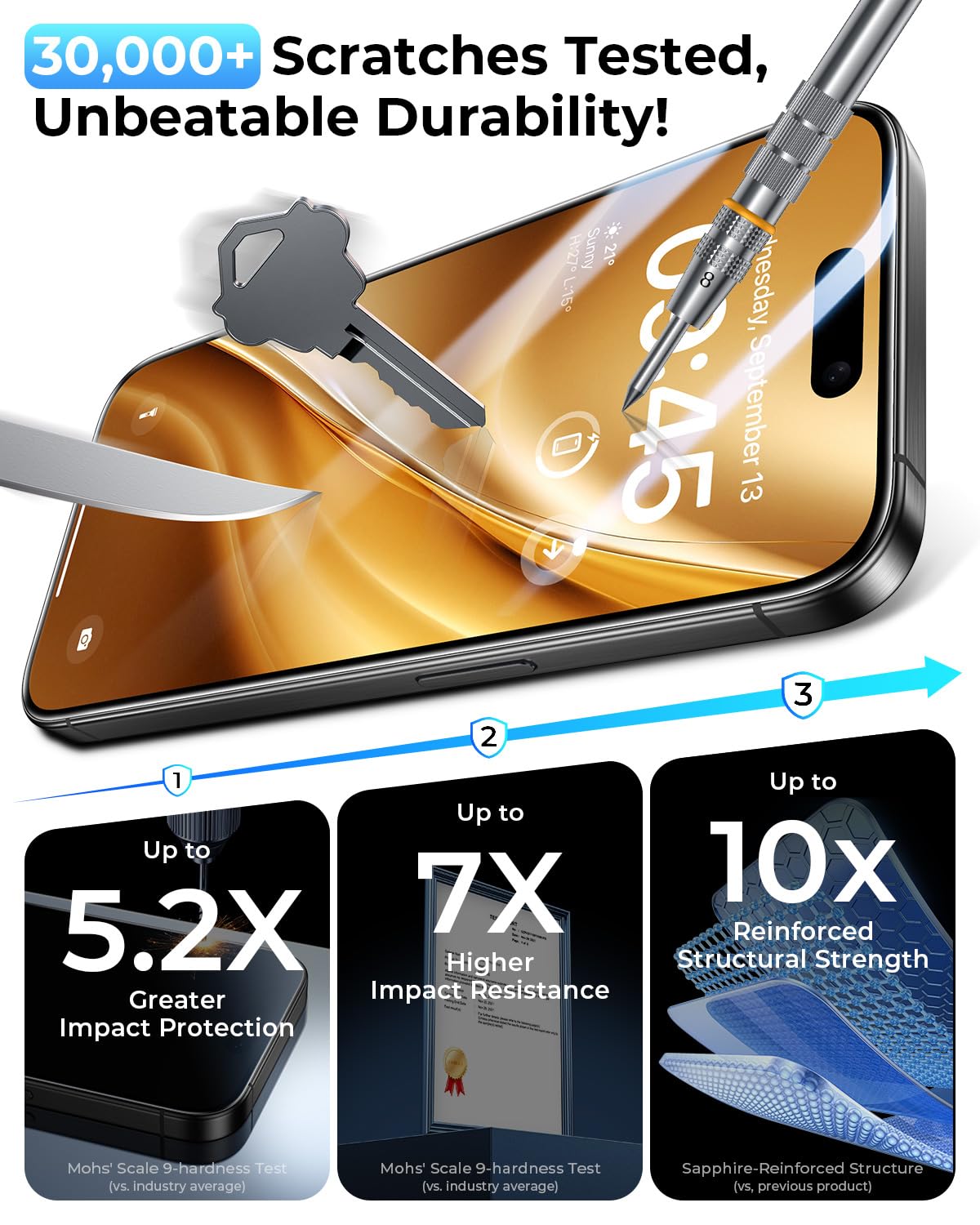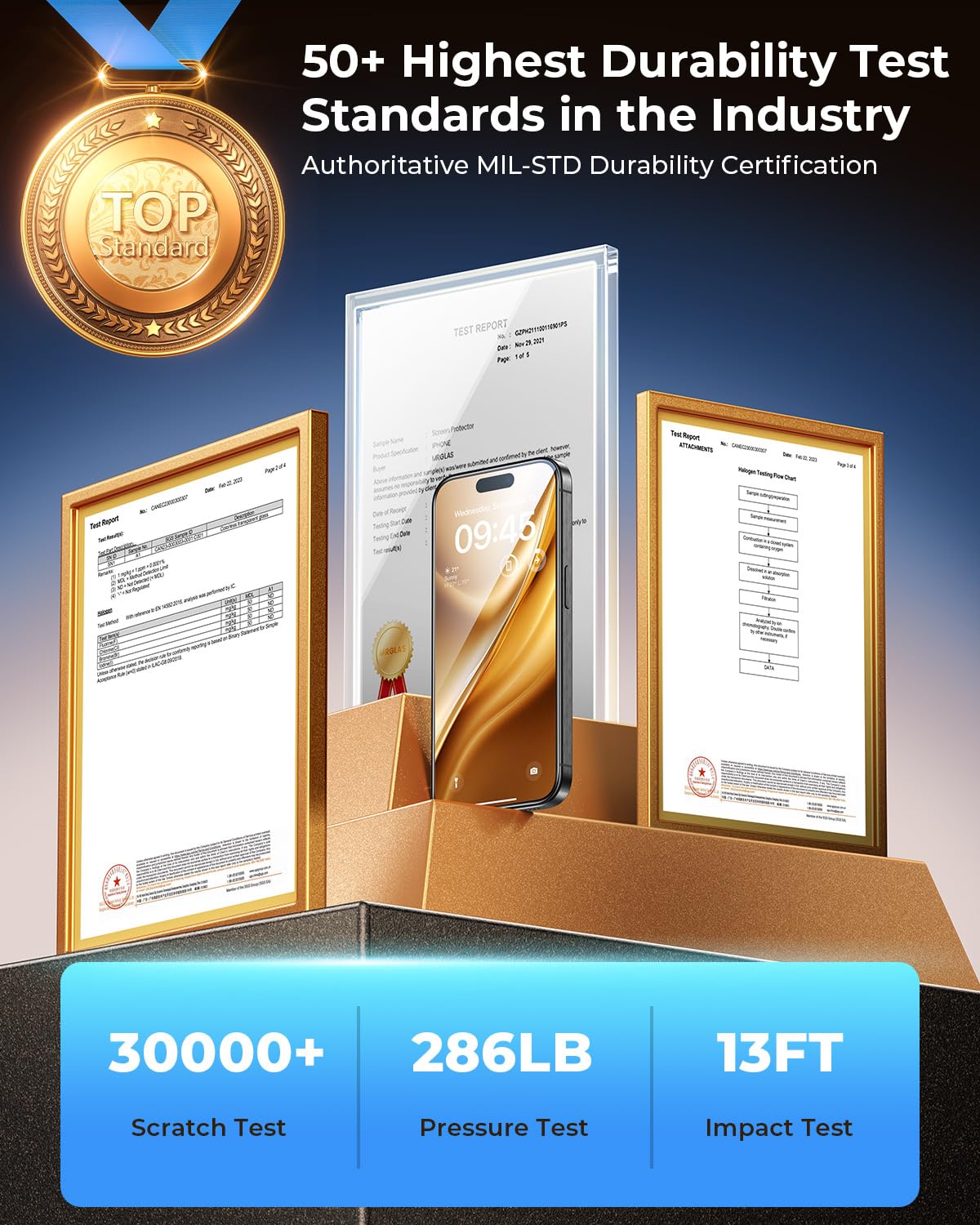 UNBREAK TOP 9H+ Glass 2+2 Packs for iPhone Air Privacy Screen Protector with Camera Lens Protector [Zero Bubble][10X Military Protection] 17 Air 6.5" Tempered Glass Full Edge Coverage,Case-Friendly $27.99MRGLAS 4-Pack TOP 9H+ Glass for iPhone 15 Pro Max Screen Protector [Auto Alignment Kit] [10X Military Protection] UNBREAK Tempered Glass for 15 ProMax 6.7 inch Longest Durable Case-Friendly