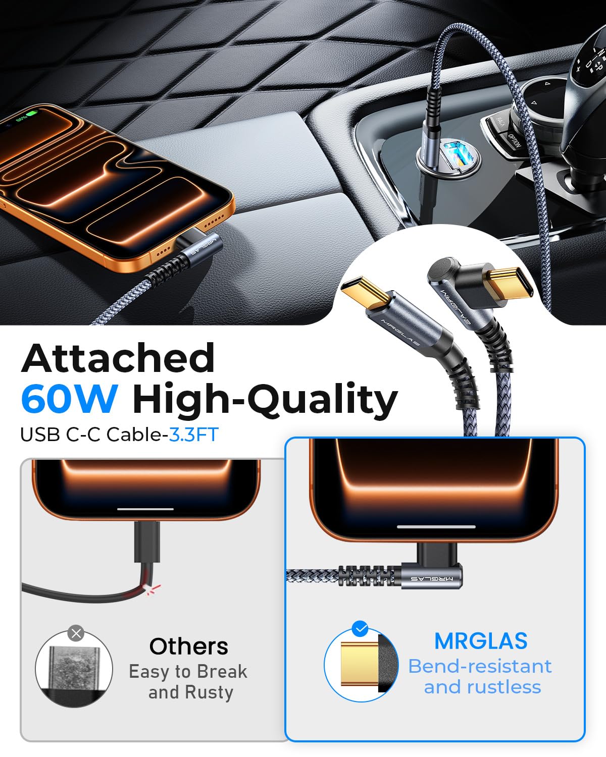 - ULTRA DURABLE USB C-C RIGHT ANGLE CABLE: In order to provide a more convenient usage experience, MRGLAS comes with a 3.3-foot USB C to C nylon cable, which is made of break-resistant SR and abrasion-resistant nylon material, and it can withstand 100,000+ bending tests without breaking. It also supports up to 60W fast charging and is perfectly compatible with all Android and USB C devices