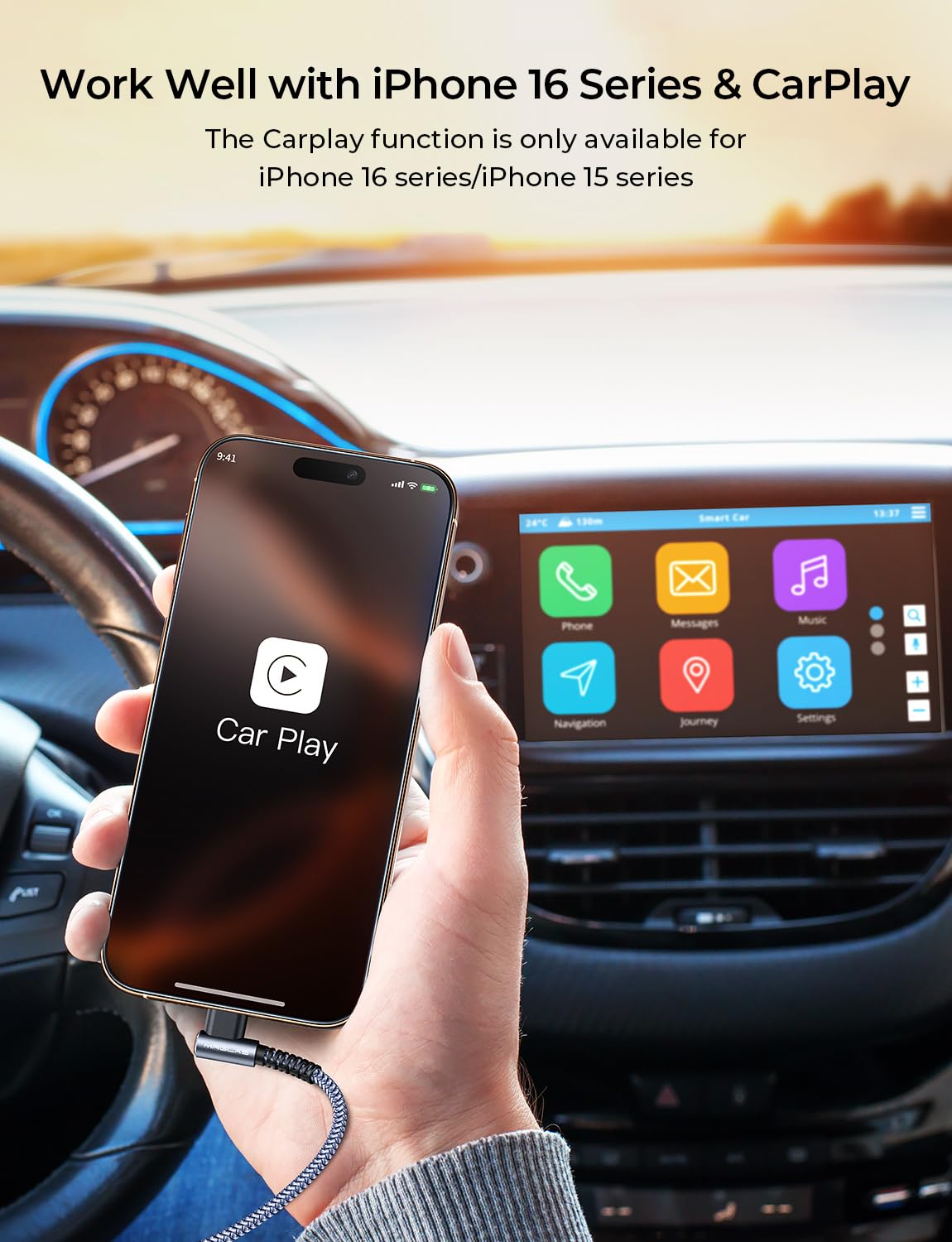 -17%- 2-Year Promise: We’re so confident in our cables, we are responsible for all quality issues. It’s the only cable you will ever need to buy. We provide this 2-pack 3.2A premium nylon-braided CarPlay usb c charger cable right angle (6.6ft+6.6ft)