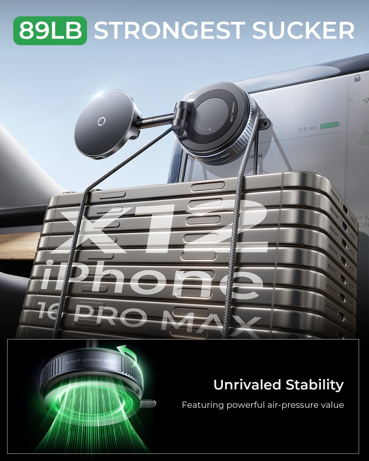 MRGLAS for 15W MagSafe Car Mount Charger, Vacuum Magnetic Wireless Car Charger for iPhone 17 Pro Max Accessories, Suction Cup Phone Mount Charger for iPhone 16 16e 15 14 13 with MagSafe Case