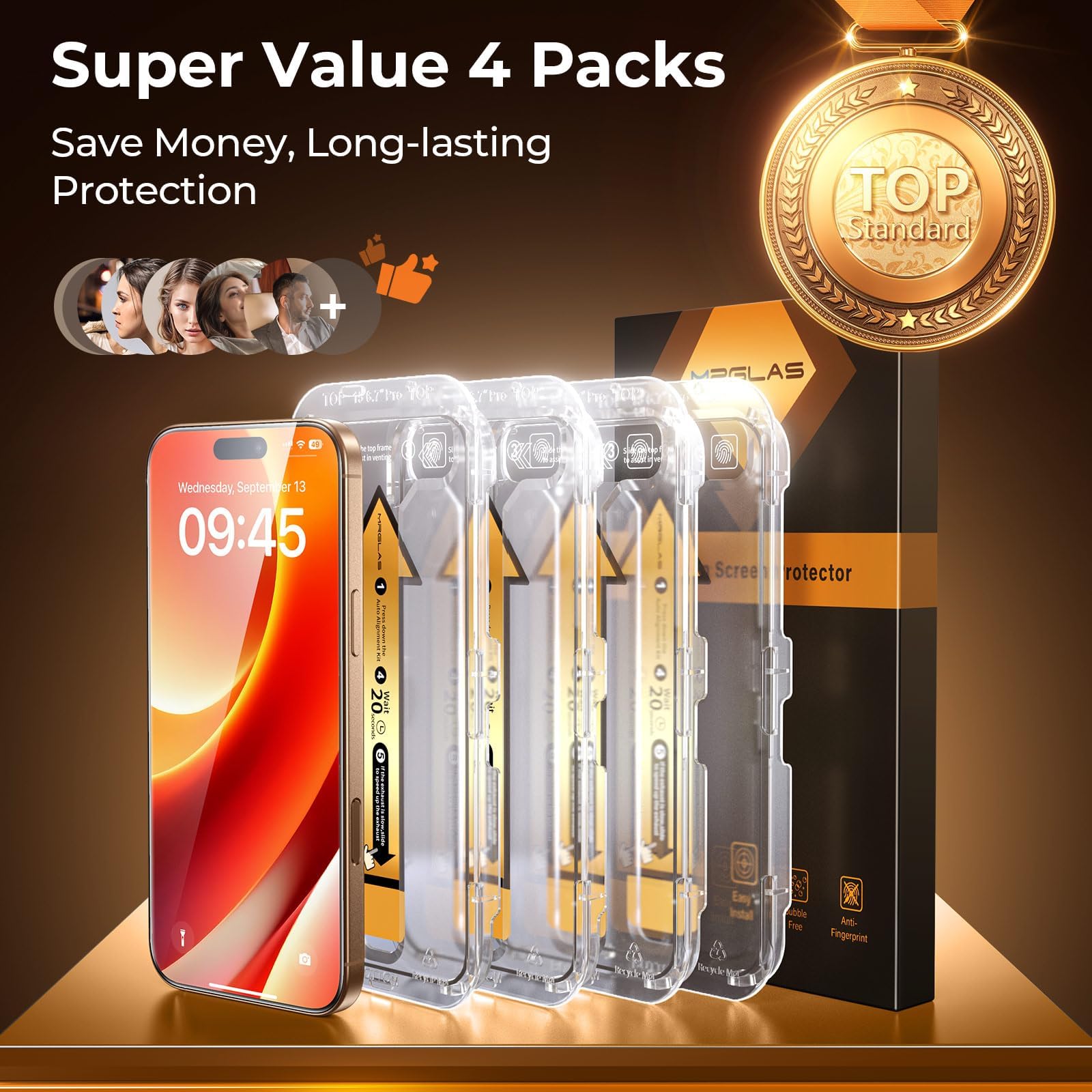 MRGLAS [4 Stück] iPhone 16 Pro Max Panzerglas – Full Screen Displayschutzfolie mit Auto-Installation & Automatischer Kalibrierung, 9H+ Gehärtetes Schutzglas, Militärschutz, Anti-Fingerabdruck, HD Klar $19.99